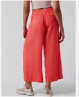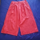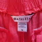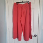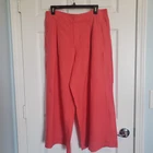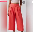 Athleta Playa Linen Wide Crop Palazzo Pants Womens 16. Passion Fruit Coral RN 798591. Two front zip pockets, two rear pockets. Elastic at rear of waistband with flat front. Fabric and wash tags were removed - last 3 photos are stock photos from other listings. Pants were machine washed with other colors (no color transfer), line dried and lightly pressed. Laundered beautifully. Good condition. Returns accepted - buyer pays return shipping.