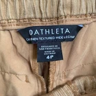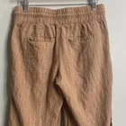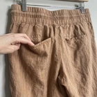 Warm-weather travels, resort vacations and to and from the beach. FAVE: Zip pockets on front secure your essentials. FIT: Relaxed with room to move. Terracotta color. Allover linear textured knit design. Pull-on. Elasticized wide waistband with drawstring closure. Front hip zippered seamed pockets. Back welt pockets. Relaxed straight leg. Lightweight linen fabrication. Color: Rain Dance Siena Beige Size 4 Petite Measures Flat Approximately: 14.5" Waist, 9.5" Rise, 28.25" Inseam 100% Linen Machine Washable **These pants are preowned, and show normal wear! No stain or holes! There are some minor nub pulls due to the nature of the fabrication! Great Condition!**