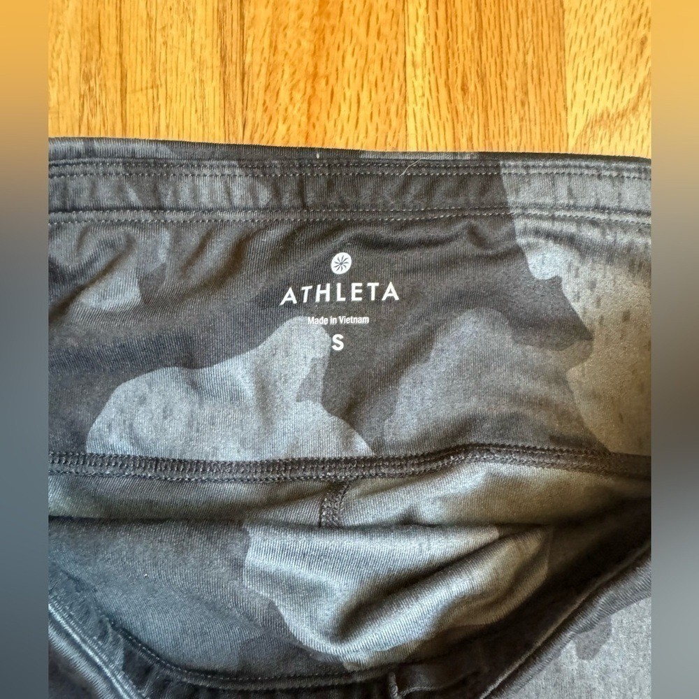 Size Small Excellent condition Polyester stretch blend Inseam: 22.5" Invisible zipper pocket in back Mesh on legs Two side pockets Camo pattern Rise: 9" Waist: 13"