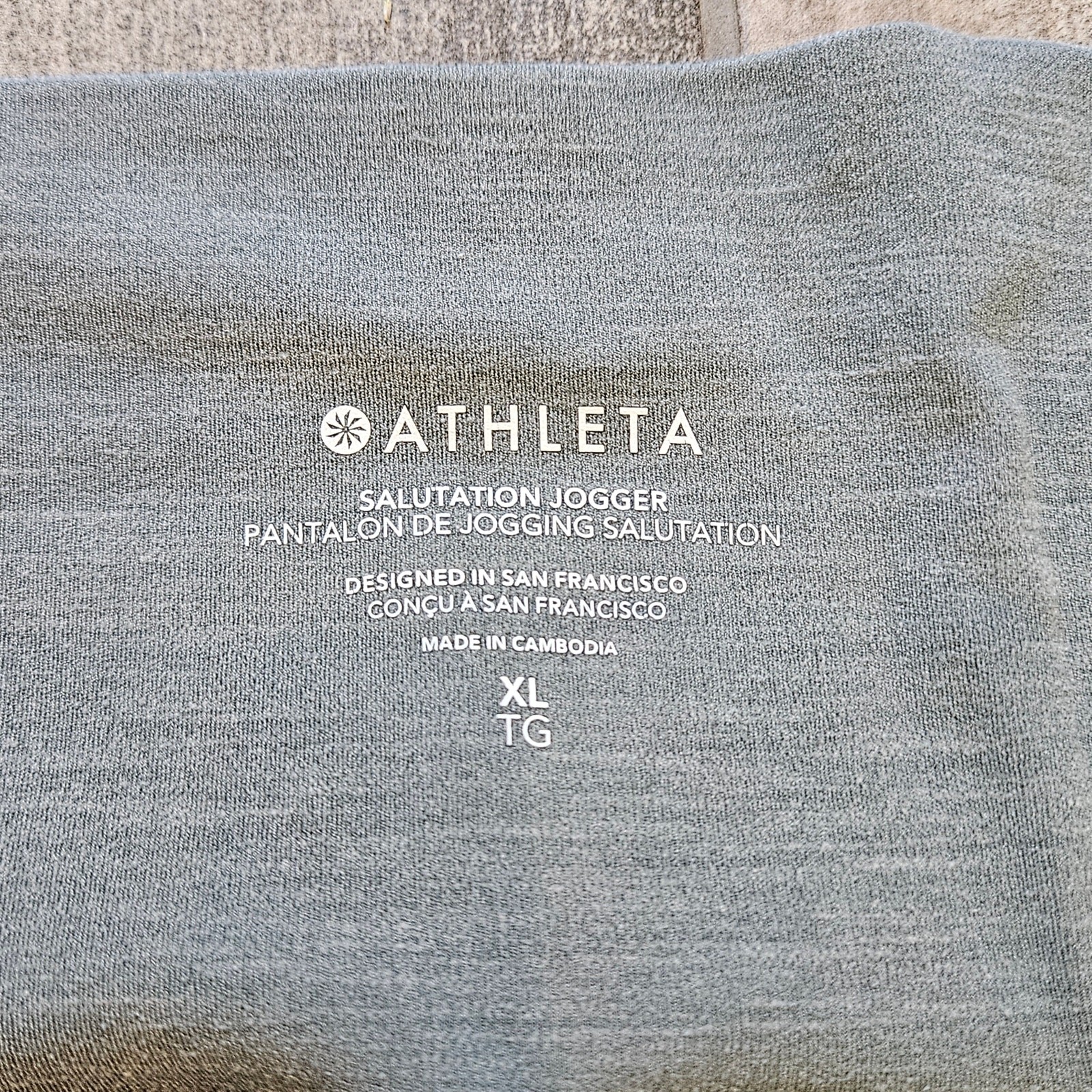 Athleta Salutation Jogger Powervita Lot of 2 Women’s XL Black Gray Soft Lounge Pant Description: Lot of two Athleta Salutation Joggers in signature Powervita fabric, women’s size XL. Includes one black pair and one gray pair. Ultra-soft, lightweight, and stretchy with a supportive high waistband, side pockets, and cuffed hems. Ideal for yoga, travel, or everyday wear — Athleta’s most-loved comfort jogger. Measurements are included in the photos. Both pairs are in good pre-owned condition with light pilling at the gusset area (shown in photos). Condition: Good pre-owned — light pilling at gusset; otherwise clean, soft, and well cared for. Keywords: Athleisure, Loungewear, Minimalist, Timeless, Quiet Luxury, Stealth Wealth, Everyday Style, Work From Home, Cozy Chic, Travel Outfit, Soft Essentials, Elevated Basics, Neutral Tones, Greige, Stone, Charcoal, Wellness Wear, Relaxed Fit, Comfort Core, Sustainable Fashion, Circular Fashion, Affordable Affluence, Modern Minimalism, Gym to Street, Active Lifestyle