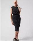 Athleta Santorini Cinch Dress Black Womens Size Medium Midi Stretch Sleeveless Pre-Owned Excellent Used Condition Womens size medium Cinch waist MIDI length Buttery soft, super stretchy The most comfortable dress/material ever! Flat lay measurements: Chest: 19” Length: 44.5” Travel, activewear, midi dress, athletic, stretch, comfort, walking, summer, spring, fall