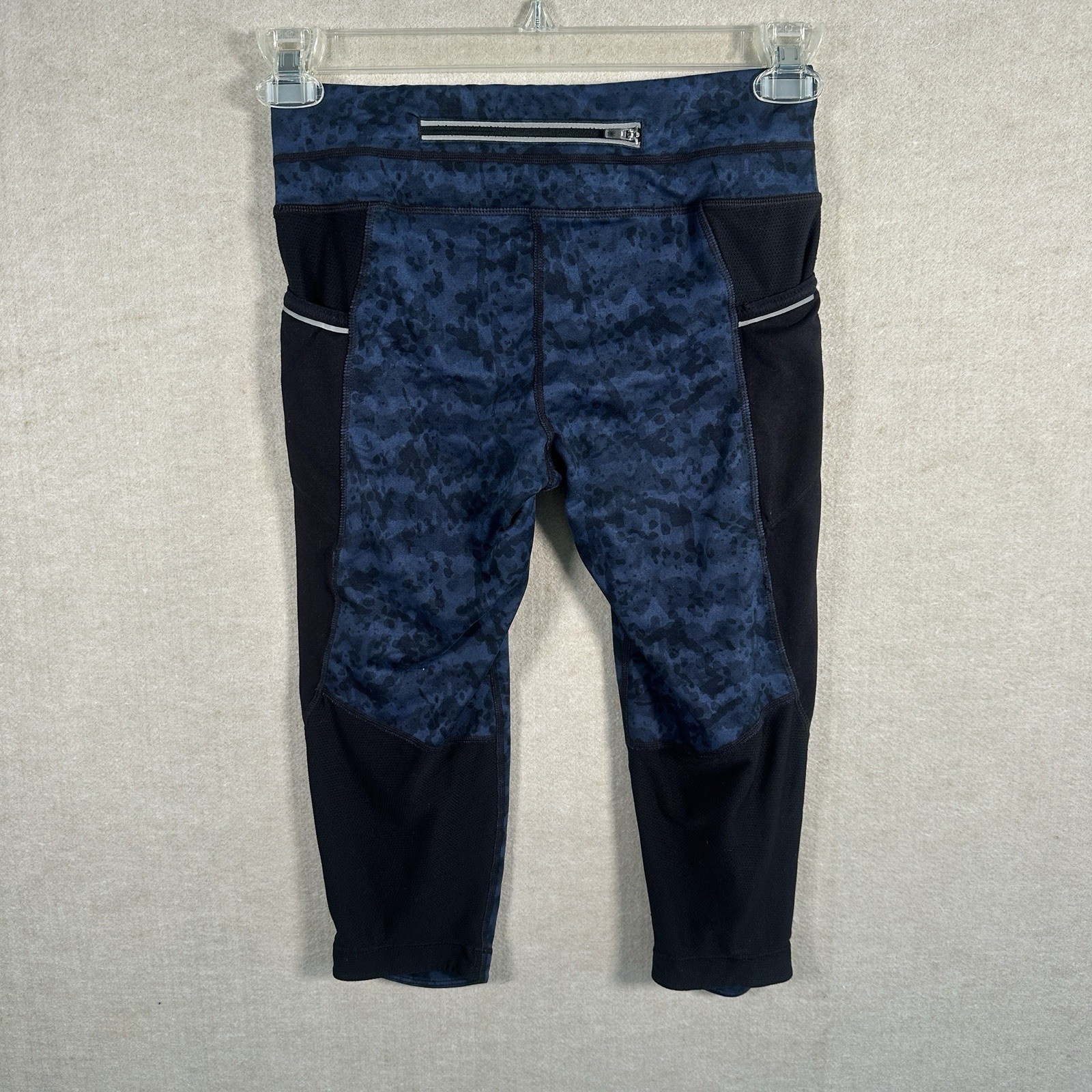 Athleta Cropped Legging, Multi Color / Blue / Black, Elastic Waist, Back Zipper Pocket, Reflective Women’s XS In great condition, please see photos for all details and measurements! Custom SKU: Y174