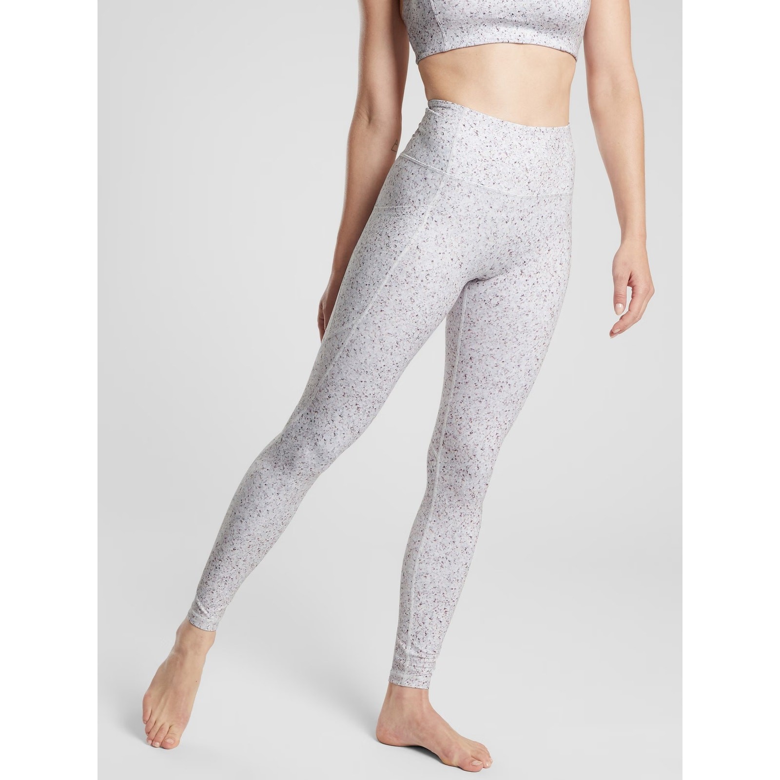 Athleta Leggings Womens XS Salutation Pebble Beach Gray Pink 27" Inseam Yoga Gym Very good condition, see all pictures for views. • Waist: 25" Not stretched • Inseam: 27" • Rise: 9"