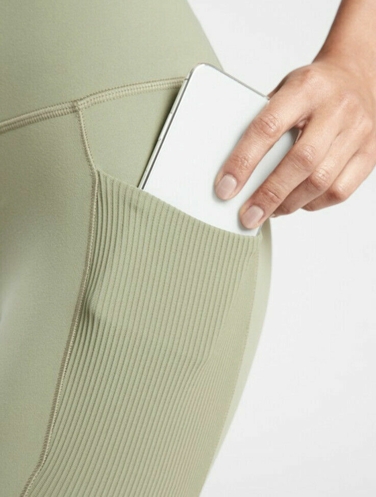 ATHLETA SALUTATION STASH POCKET II CUTOUT 7/8 TIGHT in shadow olive...new with tag FOR: Yoga or studio practice FEEL: Powervita™ fabric is buttery soft with support that feels like a gentle hug FAVE: Side stash pockets to hold your essentials Smooth, supportive waistband with a held-in sensation Novelty craft hem treatment Ribbed side panel for extra mobility Made with our customer-favorite, second-skin Powervita™ fabric, our yoga leggings/pants are designed for your ultimate distraction-free practice #657523 Nylon/ Lycra BREATHABLE: Airflow moves easily through the garment WICKING: Pulls sweat away from the body to the surface of the fabric so it can evaporate QUICK-DRYING: Dries in a flash for ultimate comfort when breaking a sweat COMPRESSION: Keeps you held in and supported in all the right places RATED UPF 50+ (Excellent Protection) ALL-AROUND STRETCH: Provides ultimate comfort and mobility Machine wash and dry. Imported. ***Inner tag marked to prevent return theft