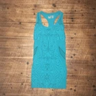 Athleta teal color with design in a darker blue. Excellent support for running and working out. Very fitted. Approximately 11 inches from armpit to armpit, 23 inches long. From a pet and smoke free house. Happy to bundle!