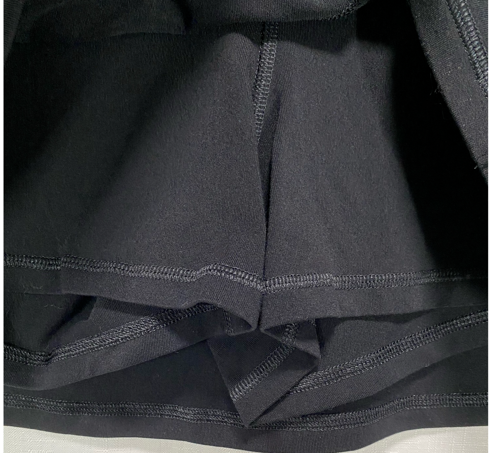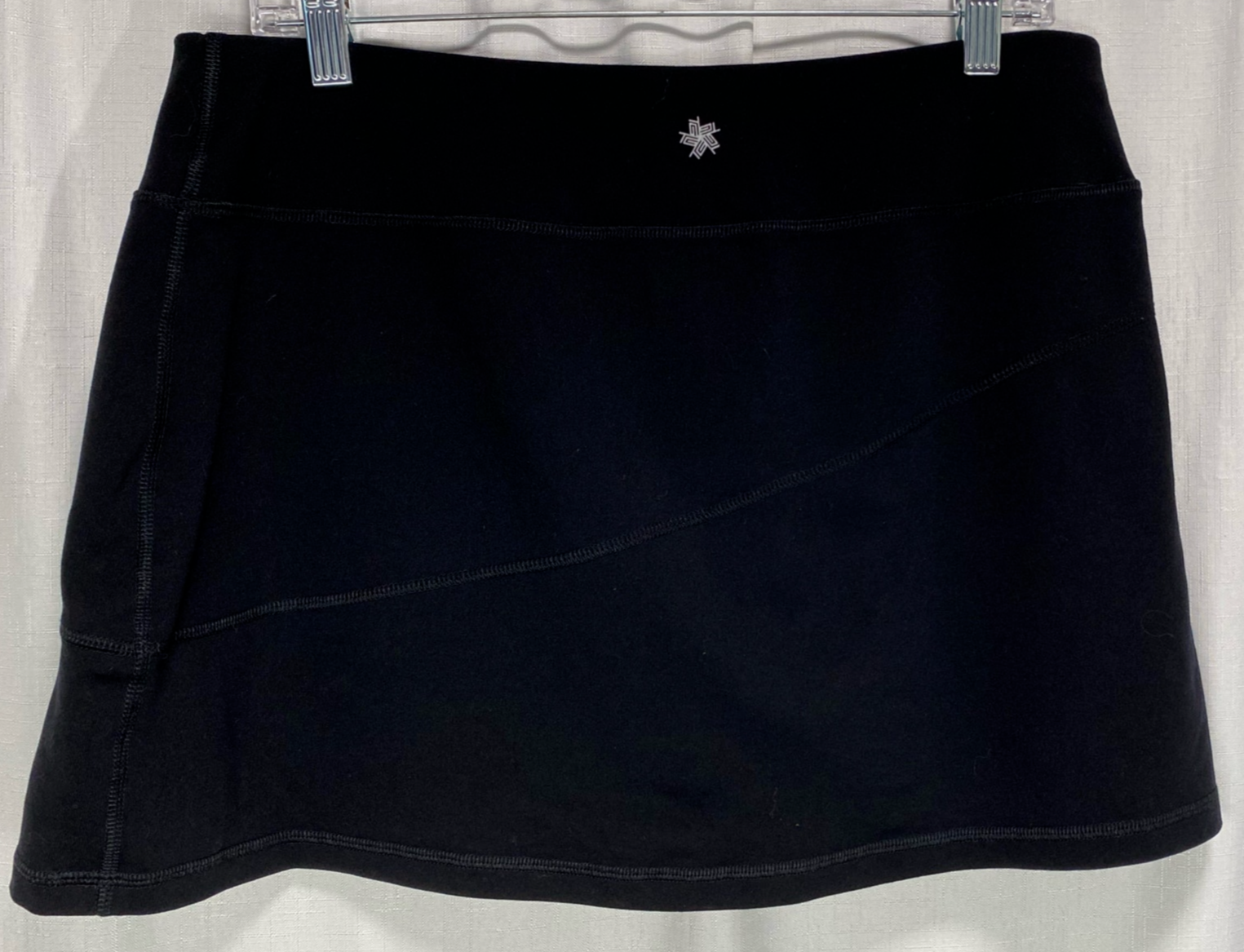 Black women's stretch skort. 92% nylon, 8% polyester. Size L. Measurements shown in photos. From a smoke free, pet free environment.
