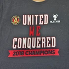 Show your pride for Atlanta United's historic 2018 MLS Cup Championship with this commemorative t-shirt! Features the iconic 'United We Conquered' design with the official MLS Cup trophy logo. Perfect for match days, supporter events, or casual wear. A must-have collector's item for any true Atlanta United fan that celebrates the team's first major championship. Color: Black Department: Men Type: T-Shirt Fit: Regular Sleeve Length: Short Sleeve Character: Atlanta United, MLS Cup Champion, Soccer Champion, United Warrior, Victory King Pattern: Graphic Print Character Family: Atlanta United FC, Major League Soccer, MLS Cup, Soccer Teams, Professional Sports Keywords: atlanta united, mls cup, 2018 champions, soccer shirt, championship tee, sports memorabilia, football, united we conquered, fan gear, collector item, athletic wear, team merchandise