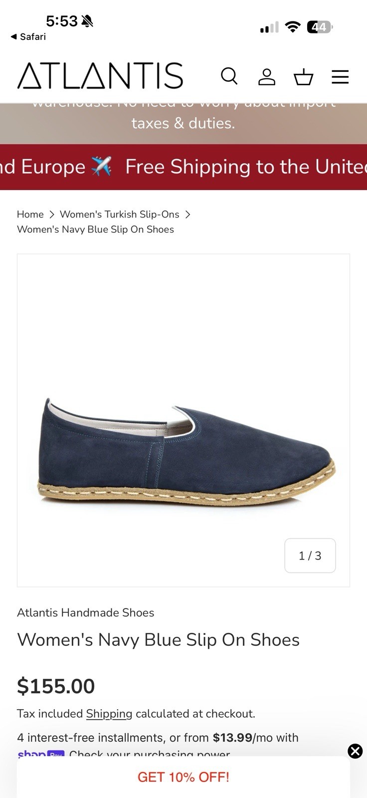 The Atlantis Handmade Turkish Leather Slip-Ons in black, size 5.5, are stylish and comfortable shoes perfect for casual occasions. Made with high-quality leather, these slip-ons feature a sleek design with a slip-on closure for easy wear. The leather lining and insole ensure a luxurious feel, while the leather outsole provides durability. Ideal for summer, fall, and spring, these slip-ons by Atlantis are a fashionable choice for women looking for both style and comfort in their footwear.