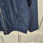 Atlas for men navy blue faux-suede bomber style jacket, size XL. Full Zip, with popper pockets, both in contrasting gold. Hook and eye cuffs so you can tailor to your size. Quilted warm lining. Great present or gift idea, perfect for a birthday, Christmas, Father's day or just a treat for yourself. Brand new, no tags but in its original packaging, only taken out to take photos. Approximate Measurements in inches: Armpit to armpit: 26 Length (shoulder to hem): 28