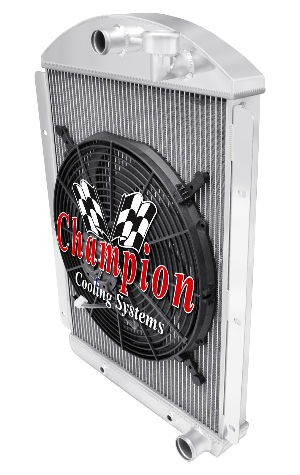 Champion Cooling radiators are tig welded with aircraft grade aluminum. Every radiator comes with a limited lifetime warranty so you can buy with confidence! Product Specifications: Core (H x W): 22.25" x 18" - Overall (H x W): 29" x 20.75" - Hose Locations (In x Out): Center x Pass - Hose Fittings (In x Out): 1.5" x 1.75" - TOC: 1/2-20 Straight Thread, Inverted FlarePlease click on the "Read more" link below to view a complete item description with product videos and additional items to upgrade your cooling system. PART INFORMATION Shipping Payment Policies Contact Us Part Information Related Items Genuine Champion Cooling Systems Part #AE4146CH This radiator is designed for a small block V8 engine. (Please Verify Your Radiator Core size Before You Buy) Features Higher density core: cooling rows are spaced 3/8" apart: giving you 25% more rows within the core than other aluminum radiators sold on eBay and 35% more rows than OEM copper. Aluminum dissipates heat more efficiently than copper or brass. 14-16 cooling fins per inch (42 per square inch) giving you approximately 1500 more cooling fins than other aluminum radiators and approximately 3000 more than OEM copper radiators. Lighter weight. Outperforms other 2, 3 and 4 row copper radiators. High performance appearance. You get "BIG BLOCK COOLING" and "PEACE OF MIND" when you drive your car with a Champion Cooling Systems radiator. You could easily spend $400 - $1,000 more for a radiator of similar quality. Specifications Down Flow Or Cross Flow Type: Down Flow Mounting Type: Bracket Tank Material: Aluminum Core Material: Aluminum Overall Height: 29 Overall Width: 20 3/4 Core Height: 22 1/4 Core Width: 18 Inlet Location: Center Inlet Diameter: 1 1/2 Outlet Location: Passenger Outlet Diameter: 1 3/4 Core Row Quantity: 2 Row with 1" Tubes Transmission Oil Cooler Fitting Type: 1/2-20 Straight Thread, Inverted Flare Internal Transmission Oil Cooler: Yes Filler Neck Attached: Yes Core Thickness: 2 1/4 Core Tube Width: 1 This package includes a 2 Row All Aluminum Radiator with 1" tubes and a 16" electric fan. Champion Cooling Systems radiators are manufactured at their ISO certified facility. They are made to high standards of quality and workmanship using the Highest Grades of aluminum available and are constructed with 100% welded seams, brazed core technology and no epoxy. They come with a Lifetime Limited Warranty and are made to install with little or no modifications using your Original Mounts giving you the confidence you desire. Shipping Shipping Shipping Policy FedEx Ground Service to the Lower (48) States: FREE SHIPPING. (Hawaii and Alaska $95.00 Additional Shipping Charge). International Shipments are via FedEx International (See Shipping Drop Box For Prices). Payment Guarantee Policies Contact Us Thank You!