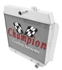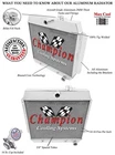 Champion Cooling radiators are tig welded with aircraft grade aluminum. Every radiator comes with a limited lifetime warranty so you can buy with confidence! Product Specifications: Core (H x W): 17.125" x 21.5" - Overall (H x W): 23.75" x 25.125" - Hose Locations (In x Out): Center x Pass - Hose Fittings (In x Out): 1.5" x 1.75" - TOC: 1/2-20 Straight Thread, Inverted FlarePlease click on the "Read more" link below to view a complete item description with product videos and additional items to upgrade your cooling system. PART INFORMATION Shipping Payment Policies Contact Us Part Information Related Items Genuine Champion Cooling Systems Part #AE4954 This radiator is designed for a V8 conversion. (Please Verify Your Radiator Core size Before You Buy) Features Higher density core: cooling rows are spaced 3/8" apart: giving you 25% more rows within the core than other aluminum radiators sold on eBay and 35% more rows than OEM copper. Aluminum dissipates heat more efficiently than copper or brass. 14-16 cooling fins per inch (42 per square inch) giving you approximately 1500 more cooling fins than other aluminum radiators and approximately 3000 more than OEM copper radiators. Lighter weight. Outperforms other 2, 3 and 4 row copper radiators. High performance appearance. You get "BIG BLOCK COOLING" and "PEACE OF MIND" when you drive your car with a Champion Cooling Systems radiator. You could easily spend $400 - $1,000 more for a radiator of similar quality. Specifications Down Flow Or Cross Flow Type: Down Flow Mounting Type: Bracket Tank Material: Aluminum Core Material: Aluminum Overall Height: 23 3/4 Overall Width: 25 1/8 Core Height: 17 1/8 Core Width: 21 1/2 Inlet Location: Center Inlet Diameter: 1 1/2 Outlet Location: Passenger Outlet Diameter: 1 3/4 Core Row Quantity: 2 Row with 1" Tubes Transmission Oil Cooler Fitting Type: 1/2-20 Straight Thread, Inverted Flare Internal Transmission Oil Cooler: Yes Filler Neck Attached: Yes Core Thickness: 2 1/4 Core Tube Width: 1 This package includes a 2 Row All Aluminum Radiator with 1" tubes. Champion Cooling Systems radiators are manufactured at their ISO certified facility. They are made to high standards of quality and workmanship using the Highest Grades of aluminum available and are constructed with 100% welded seams, brazed core technology and no epoxy. They come with a Lifetime Limited Warranty and are made to install with little or no modifications using your Original Mounts giving you the confidence you desire. Shipping Shipping Shipping Policy FedEx Ground Service to the Lower (48) States: FREE SHIPPING. (Hawaii and Alaska $95.00 Additional Shipping Charge). International Shipments are via FedEx International (See Shipping Drop Box For Prices). Payment Guarantee Policies Contact Us Thank You!