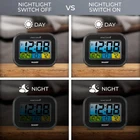 Atomic Digital Alarm Clock, Battery Operated Self-Setting Digital Wall or Desk Clock, Easy to Read Color Display Nightlight with Indoor Temperature and Calendar Digital Wall Clock with Accurate Date and Time - This digital calendar alarm day clock can help you keep track of dates, days of the week and times to avoid missing any important meetings, appointments or anniversaries, work well for work, study or travel schedule. Perfect for the office desk, kitchen, bedroom. Great for seniors or the elderly with a design that easy to set up and operate Atomic Alarm Clock - The Atomic Clock has a built-in receiver that automatically synchronizes itself with the WWVB radio broadcast by the US Government’s National Institute of Standards & Technology (NIST) in Fort Collins, Colorado. The Atomic Clock will always be accurate to within one second as it receives daily WWVB updates. Display Nightlight with ON/OFF Switch - The Display nightlight is visible in the dark, providing a low light glow. This makes the display easy to read in the dark, but dim enough not to disturb. Note: The display nightlight will not be visible in a well-lit room. Calendar & Day of Week Display - Always know what day of the week it is with a quick glance. The clock displays the calendar and the day of the week. Indoor Temperature Display - Get the real-time indoor temperature of your home displayed on your clock. Easy to Read - The Sharp Atomic Clock with color display (Model - SPC5028AMZ) can be easily mounted to the wall or can be used on table top or desk with the built in stand. This atomic alarm clock is properly sized for bedside, desk, counter, or shelf use at 6.45 inch x 5 inches. Requires 3 x AAA batteries Needed (not included). Product Description Sharp Color Atomic Clock with Indoor/ Outdoor Temperature Display The Sharp Atomic Wall Clock has a built in receiver that automatically synchronizes itself with the WWVB radio broadcast by the US Government ‘s National Institute of Standards and Technology (NIST) in Fort Collins, Colorado. The Sharp Atomic Clock will always be accurate to within one second as it receives daily WWVB updates. Automatically Sets for Daylight Savings Time: When you set up the clock, set the Daylight Savings Time setting to ON Atomic Accuracy: The Atomic clock has a built-in receiver that automatically synchronizes itself with the WWVB radio broadcast by the US Government’s National Institute (NIST) in Fort Collins, Colorado. The Atomic Clock will always be accurate to within one second as it receives daily WWVB updates. Sharp Atomic Clock with Bright Color Display Digital Wall Clock with Accurate Date and Time - This digital calendar alarm day clock can help you keep track of dates, days of the week and times to avoid missing any important meetings, appointments or anniversaries, work well for work, study or travel schedule. Perfect for the office desk, kitchen, bedroom. Great for seniors or the elderly with a design that easy to set up and operate Feature Packed Atomic Clock Easy to Read Color Display Display Nightlight with ON/OFF Switch Indoor Temperature Display Calendar and Day of Week Display Requires 3 x AAA batteries Needed (not included) Atomic Setting Atomic Clock with Indoor/Outdoor Temperature Atomic Accuracy: The Atomic clock has a built-in receiver that automatically synchronizes itself with the WWVB radio broadcast by the US Government’s National Institute (NIST) in Fort Collins, Colorado. The Atomic Clock will always be accurate to within one second as it receives daily WWVB updates. Displays indoor temperature - Displays calendar and day of week Display Nightlight with ON/OFF Switch The Display nightlight is visible in the dark, providing a low light glow. This makes the display easy to read in the dark, but dim enough not to disturb. Note: The display nightlight will not be visible in a well-lit room. ATOMIC CLOCKS HOW THEY WORK Sets Itself: Atomic Clock This Sharp Atomic clock automatically synchronizes itself to the US Government's National Institute of Standards and Technology in Fort Collins, Colorado. The WWVB radio signal daily broadcast ensures that the atomic clock will always display the most accurate date and time. In most areas, a signal can only be received at night. If your clock does not receive the WWVB signal immediately, just wait overnight and it should be set in the morning. It may take up to 48 hours. ATOMIC SIGNAL ASSISTANCE Most WWVB radio controlled clocks work great, as evidenced by the hundreds of thousands of units that have been sold throughout the United States. However, if you are having issues, we suggest: ◦ mounting it on a wall perpendicular to the one it is currently on (e.g. if it is on a north-south wall try an east-west wall). ◦ Place the clock along a wall or near a window that faces Fort Collins, Colorado. ◦ Locate the clock at least 6 ft. away from any computer monitors, which can cause interference (some monitors have a scan frequency at or near the WWVB carrier frequency of 60 kHz). ◦ If nothing else works, take the clock outdoors at night and power it down (remove the batteries or unplug it), then power it up again to force it to look for the WWVB signal. If it works outdoors but not indoors, you probably have a local interference problem inside your house or building. If it doesn't work outdoors at night, its probably best to return it and try a different model. The shielding provided by a metal building might prevent the clock from working. For example, if you live in a mobile home or a house with steel siding, the clock might not work. Auto Synchronization Tips Automatically synchronizes to US National Institute Standards and Technology in Fort Collins, CO. Daily radio signal broadcast ensures atomic clock will display the most accurate date and time. If clock doesn’t receive WWVB signal immediately, wait overnight and should be set in the morning. Sharp - America’s #1 Alarm Clock Brand Join the 60+ Million 
