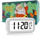 Atomic Digital Alarm Clock Battery Operated Self-Setting Digital or Desk Discription :This Christmas alarm clock for heavy sleepers is powered by 3×AAA batteries (NOT INCLUDED). No cord needed. Very easy to use. It is an easy cordless battery operated alarm clock, features large clear display, smart low night light, 12-hour / 24-hour, indoor temperature, easy for kids, teens to use, basic bedroom bedside table desk gift alarm clock. 👍Excellent design: Unlike Mechanical alarm clock that keeps ticking, affecting the quality of your sleep. We clock is quiet, allowing you to get rid of the noise of the night and sleep peacefully. Easy to use: This Bedside Christmas smart clock for your convenience for powering, A built-in No.7 battery(not include) for saving your clock-settings in case of power outages; Time display support both 12hrs and 24 hrs format. Mode, time and date can be conveniently set at the touch of a button. ♚【ANYWHERE YOU WANT】: Provide you with a comfortable and convenient life. Easy for kids, seniors and the elderly. It can be placed in bedroom, on desk or any places you need. Let you fall asleep easily and wake you up comfortably in the morning. Gradually enlarge the alarm, Ascending "beeping" alarm for gentle wake, then turns itself off. Press SNOOZE, alarm temporarily suspends and will sound again 5 minutes later.