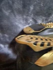 Backs of the heel grip pads are worn and could use replacing. Other than that they appear to be in good condition inside and out. Scuffing and wear marks on plastic surface in spots and cosmetic issues