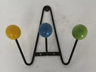 Atomic Small coat rack colored wooden balls pop art Roger Feraud wrought iron French vintage measurements 12.2" (31 cm) high, 12" (30.5 cm) wide and approximately 3.93" (10 cm) deep description some spots, damage to the blue ball, for details please see pictures,the pictures are part of the description ask any question if needed also about combined shipping prices. Insurance is automatically included in the shipping. We pack extremely well so your package will arrive safely.