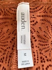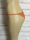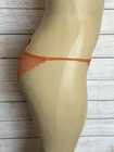 This is a women's orange lace tanga cheeky panty by Auden in size M. Made of lightweight nylon lace, this panty features a floral pattern and offers stretch for comfort. It is machine washable and designed with a compression area at the waist. The brand is Auden, and the country of manufacture is Sri Lanka.