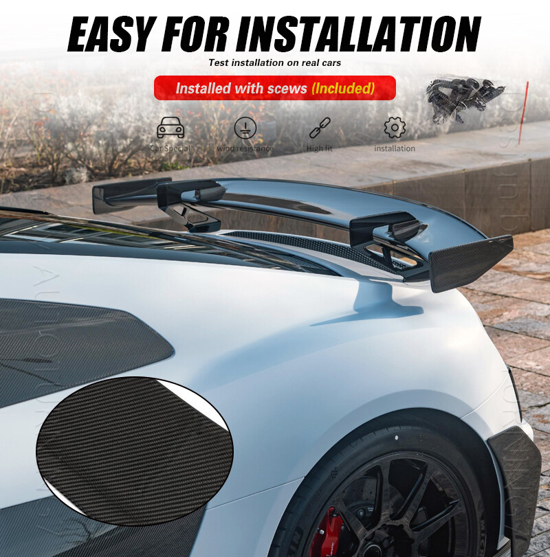 Fitment: Fits for Audi R8 V10 Coupe 2-Door 2019-2024. Specifications: Product Name: Rear Spoiler Material: DRY Carbon Fiber Features: Made of High Quality Lightweight Carbon Fiber. Latest Design GT Wing Spoiler Completed Kit, Improve Handling And Make Tail More Stable in High Speed. Water Transfer Carbon Fiber for Highest Durability and Appearances. Adjustable Angles for Customizable Usages and Efficiencies, Enhances Aerodynamic. Reduces Drag, Increases Fuel Efficiency, Reinforces Downforce, Traction and Stability. Double-sided adhesive paste, Easy to Install. Package included: 1 x Spoiler with screws Carbon Fiber Spoiler FOR AUDI The Rear Trunk Spoiler is one of the simplest mods you can do to the exterior of your car that will give your car that completely different look. Not only are spoilers meant for great looks, they also help with the aero dynamics of the car by lowering drag, or helping to put more downforce on the car making sure that the wheels stay grounded for maximum traction. Fitment: Fits for Audi R8 V10 Coupe 2-Door 2019-2024. Specifications: Product Name: Rear Spoiler Material: DRY Carbon Fiber Features: Made of High Quality Lightweight Carbon Fiber. Latest Design GT Wing Spoiler Completed Kit, Improve Handling And Make Tail More Stable in High Speed. Water Transfer Carbon Fiber for Highest Durability and Appearances. Adjustable Angles for Customizable Usages and Efficiencies, Enhances Aerodynamic. Reduces Drag, Increases Fuel Efficiency, Reinforces Downforce, Traction and Stability. Double-sided adhesive paste, Easy to Install. Package included: 1 x Spoiler with screws Delivery details Payment and TAX Warranty Policy Return Policy Contact us Delivery details NOTE: The shipping fee is only for the mainland of each country, it does not include the overseas territories, such as Virgin Islands (U.S.) , Puerto Rico, Hawaii , French Reunion Island, etc. But on ebay, when buyers from Puerto Rico and overseas territories , the shipping fee is equal to United States, it is NOT correct,. please contact us for correct shipping fee, or we will cancel the order. Sorry for the inconvenience, and thanks for your cooperation. 1. Item will be shipped in 10 days, most within 2 days.usually it takes 7-30 days in transit to most countries. 2. If you want to upgrade the shipping, please contact us before making payment, we will revise the shipping fee. 3. We will ship according to your Ebay address. Please make sure it is correct and include phone number for delivery. If you have any questions , please contact us, we would do our best to serve you solve the problem. Payment and TAX 1.We accept Multiple Payment Methods Available: Credit Card, Debit Card, Gift Card, Apple Pay, Goggle Pay, PayPal and PayPal Cred. 2.Please leave note for your special request (e.g. Colors or Size) in ebay note when you pay the order. 3.Your must complete the payment within 7 days or Ebay will automatically open unpaid item case For US Buyer:The invoice value of each item is less than 800USD ,so you no need to pay any tariff . NON-US Buyer Note: Most countries are tax free based on our invoices, if tax is required, which will be buyer's responsibility. Warranty Policy We Warranty Our Product Within the Limited Warranty Policy Specified on Ebay. Please Email us if ou have any question regarding the warranty policy on a specific item. Most of the items are Aftermarket Parts and they are intended for off-road usage only, therefore no installation instruction will be included, Professional installation are Highly Recommended. We are not responsible for any damages to the item or the vehicle that occur during the installation of the item.Also, Please Make Sure Proper Installation is Performed as we are not responsible for item being missing or flew off after the installation. if you don't think the item can stay on the car properly, please do not attempt to drive the car with it and please check with professional shops/mechanics or contact us for assistance. Return Policy We Accept Returns Within the Return Period On Ebay. Return Authorization/Return Approval is Required For Every Return. So If you Wish to Make a Return On Your Purchase. Please Contact us Before You Send The item back For any damages occured to the item upon arrival, Please notify us within 5 days of the delivery so we can take proper action to fix the issue. So Please Kindly inspect and check the item condition upon arrival.For Any other Return Inquries, You can contact us within the return period to obtain return authorization/return approval. In case of return, the merchandise needs to be returned in original condition with origi- nal packaging in order to be eligible for an exchange or a refund. Items must be not opened in their original package. Any mark of installation, mounting, cutting, scratch or using will not be allowed. Contact us 1.We are trying our best to explain all details of the products here! If you have any question, please feel free to contact us by Ebay message, and We will get back to you within 24-48 hours. 2.Customer satisfaction is our NO.1 priority. If you are not happy with the item that you purchase, please contact us first. We will try our best to solve the problem with you.Please leave us a positive feedback if you receive the item.Please do not leave negative or neutral feedback without any contact.If you haven't received item in 30 days, please contact us and we will arrange refund.We appreciate your business.Happy Bidding & Have a nice day! 3.Working hours: From 8 a.m. to 6 p.m. from Monday to Friday. From 8 a.m. to 12 a.m. on Saturday morning Holiday/Rest time: Saturday afternoon and Sunday