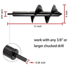 Auger Drill Bit for Planting 4"X12",Garden Plant Flower Bulb Bedding Planter 【Garden Auger Drill Bit Size】4-inch (10.16cm) diameter x 12-inch (30.48cm) length.63/64 inch (2.5cm) steel shaft with non-slip hex drive 0.31 inch (0.8cm). 4" x 12" drill bit auger can work with any 3/8" or larger chucked drill,You can quickly dig holes up to 12 inches deep and 3 inches wide using the power of handheld garden drill. 【Upgrade Drill Bit for Planting】Upgraded the shape of the spiral drill bit, increased the friction of the drill bit, more time saving, faster and more convenient. 4" x 12" auger drill bit which can be used with any electric or cordless drill (18V or greater drill recommended )that can compatible most 3/8" bit. 【Garden Drill Planter】This is a kind of professional garden spiral drilling bit, made of firm heavy duty steel material, with glossy black painted finish,auger design for maximum digging performance.Perfect for planting bedside plants, bulbs, seedlings or fertilizing shrubs and trees to deep water aeration and even weed and root removal. 【Multi-Purposes】The planting auger for drill can be widely used for planting bulbs,vegetables,flowers,potted plants,bare root trees and shrubs.The drill bit can pulverizes the soil, giving your plants better soil-to-root contact.The hole digger for drill is also great for mixing paint,mortar,grass seed or fertilizer.Meanwhile,it's a good helper on your vacation,can drill a hole in sand to fix your beach umbrella,drilling holes for tents and so on. 【100% Satisfaction Guarantee】Our team of professionals is constantly working to make you happier.And any questions about the garden drill auger, please also feel free to contact me so that I can help you solve the problem as soon as possible. Auger Drill Bit for Planting 4"x12", Flower Bulb & Bedding Plant Auger for 3/8” Hex Drive Drill Made of high strength steel material,the 63/64 inch (2.5cm) steel shaft with a glossy black painted finish and non-slip hex drive 0.31 inch (0.8cm).The quality steel material ensure its durability and long term use. Shipping We offer FREE shipping on all orders! We ship within Three business days of payment, usually sooner. We use a selection of shipping services such as UPS, FedEx, USPS etc. We only ship to the lower 48 states, no APO/FPO addresses or PO Boxes allowed. Local pickups and combined shipping options are not provided at this time. Return You can return a product for up to 30 days from the date you purchased it. Any product you return must be in the same condition you received it and in the original packaging. Please keep the receipt. Payment We accept payment by any of the following methods: PayPal Please pay as soon as possible after winning an auction, as that will allow us to post your item to you sooner! Feedback Customer satisfaction is very important to us. If you have any problem with your order, please contact us and we will do our best to make you satisfied. Contact Us If you have any queries, please contact us via ebay. We usually respond within 24 hours on weekdays. Please visit our eBay store to check out other items for sale! Thank you for shopping at our store.