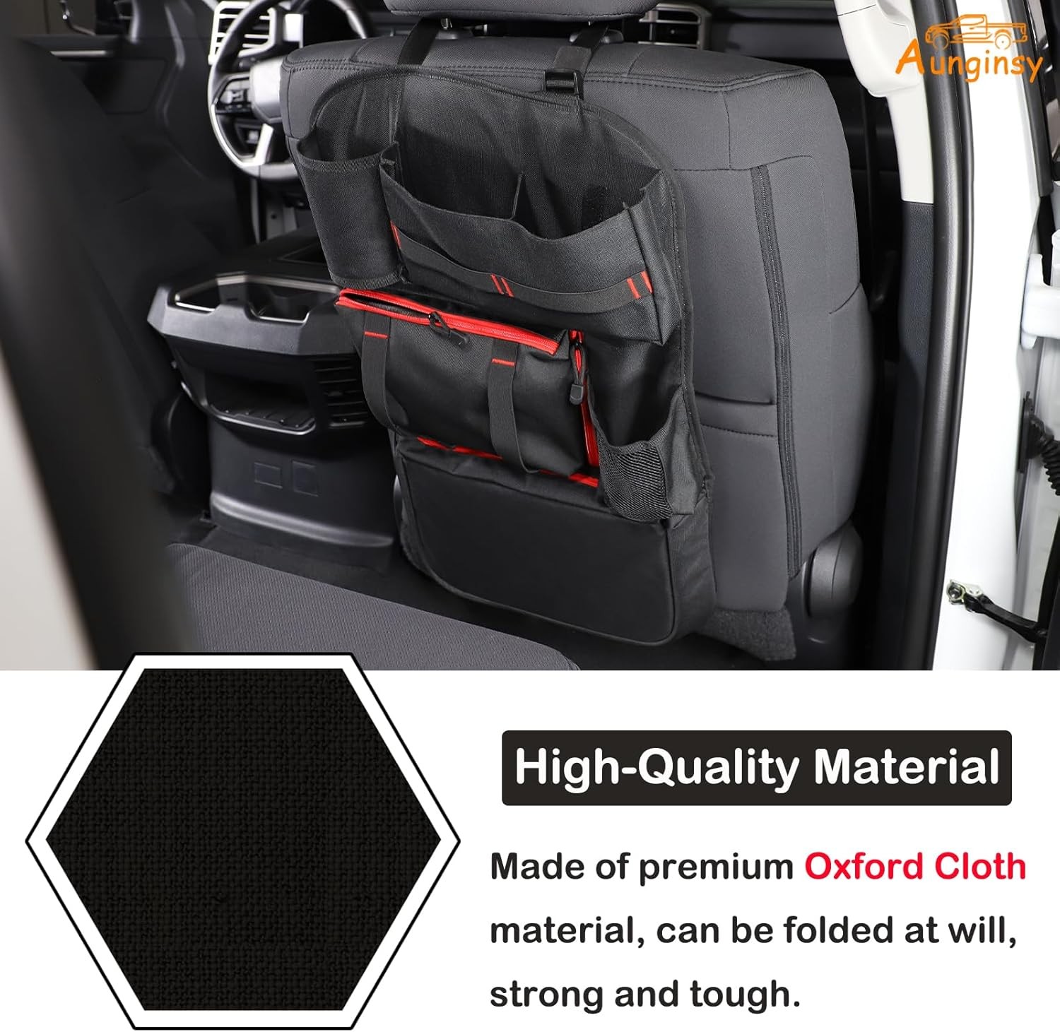 Aunginsy Back Seat Car Organizer Backseat Storage Pockets Product Details Special Feature: Portable Color: Backseat Organizer Storage Pockets Brand: Aunginsy Product Dimensions: 4"D x 2"W x 1"H Unit Count: 9.1712 Ounce Number of Items: 1 Manufacturer: Aunginsy Part Number: 12265 Item Weight: 1.68 pounds Item model number: 12265 Special Features: Portable Batteries Included?: No Batteries Required?: No Special Feature: Portable Color: Backseat Organizer Storage Pockets Brand: Aunginsy Product Dimensions: 4"D x 2"W x 1"H Unit Count: 9.1712 Ounce Number of Items: 1 Manufacturer: Aunginsy Compatible Vehicles: Backseat storage bag is compatible with Toyota Tundra 2022 2023 2024 2025+ models, Please confirm the installation location/compatible model/corresponding year before purchase, thank you~ Lots Of Storage: This car storage organizer offers 2 large compartment pockets with zippers, 2 bottle holders, 2 deep cushioned compartments, and 2 bookable straps, can store many items such as baby toys, tools, sports equipment, life supplies, cleaning agents, etc. The backseat hanging storage box not only provides more space for your car but also makes car organization easy and simple. Extremely Stable: Adjustable side straps/hooks at the bottom of the bag so you can secure the backseat car organizer when hanging it on the back or front seat. The seat back organizer will remain tightly coupled to the seat and won't hinder passengers/drivers on their way in or out. High-quality Material: This rear storage organizer is made of premium 600D polyester fabric and Oxford cloth material, strong and tough. It can withstand strong forces and prevent tears over time backseat car organizer. Company Ideas: Aunginsy offers a wide range of accessories to enhance and upgrade both the look and function of your vehicle. We sincerely appreciate your decision to purchase our products, we are always committed to providing high-quality, safe automotive decorative products and excellent, professional and customer service. TIP: Please check whether your car model is consistent with the product before buying the product to prevent buying the wrong product. After purchasing our product, please compare the product and the installation location. If the product is not suitable for your vehicle, do not install it, and contact us immediately to provide you with a return or refund service. Why Choose Our Product? ⚡ 100% Brand New! ⚡ Easy and quick installation even for beginners. ⚡ Made of high-quality material for long-term use. ⚡This product is manufactured in the original version of the original car 1:1, perfect fit-in without a gap. ⚡ 360-degree baking finish with smooth surface and luxury high-end look. ⚡ OEM & OE quality standard, as good as the original ones. ⚡ High-quality after-sales service, buy with confidence. Aunginsy has other universal interior and exterior accessories, please browse our store in detail, You will find more automotive accessories to your satisfaction, thank you!