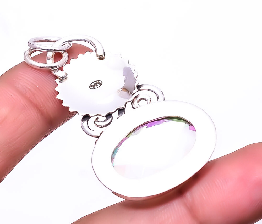Theme Beauty Main Stone Depth As Seen in Picture Main Stone Length As Seen in Picture Main Stone Width As Seen in Picture Seller Warranty Yes Shape As Seen in Picture Wholesale Yes SKU P_9412_196_61 Unit Quantity 1 Unit Type Unit Main Stone Size Free Size Type Pendant Style Pendant Item Length 2.15" Main Stone Rainbow Mystic Topaz Main Stone Creation Lab-Created Main Stone Color White Main Stone Treatment Lab-Created Material Gemstone, Stone Metal Sterling Silver Metal Purity 925 Parts Per 1000 Base Metal Sterling Silver Cut Grade Very Good Setting Style Bezel Number of Gemstones 1 Brand Unbranded Country/Region of Manufacture India Color Silver Closure Not Applicable Chain Type Not Applicable Total Carat Weight 54 Number of Diamonds As Seen in Picture Features Engraved, Nickel-Free, Handcrafted Diamond Color Grade Not Applicable Diamond Clarity Grade Not Applicable Colored Diamond Intensity Not Applicable Certification 100% Genuine Guaranteed Pendant/Locket Type Pendant Occasion Christmas, Birthday, Anniversary, Engagement, Wedding, Valen Shipping & Handling - Charge - 1st item-5.90 And Additional item-1.90 Handling Time - 1 Days . Delivery Time - 2 TO 3 DAYS. Shipping Service - USPS First Class Package 2 -3 Days. Returns - 1.We offer a 100% Money Back Guarantee minus shipping for 30 days after receiving the Item / item's. 2..The item must not be altered or damaged in any way shape or form. 3.Upon receiving these items your payment will be refunded. 4.Email us for return instructions before sending merchandise back. 5.Please allow up to 1 business day for all returns to receive credit. 6.Sizing does not affect the return policy. Payment - We accept PayPal for Payment ,should made with in 14 days once buying or winning done , in case of late information expected .