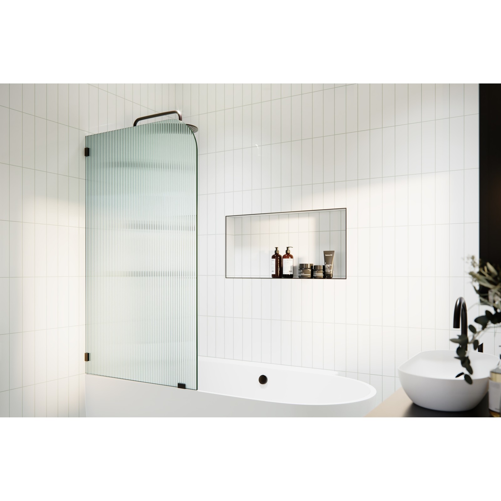 Elevate your bathroom's style and functionality with this frameless bath shower door. With its fluted frosted radius design and single fixed panel, it brings a modern touch to any bathroom decor. The brass fittings come in a variety of finishes and meet American and International Standard codes. The glass is high quality and coated with Enduroshield, making it easy to clean and maintain. Experience the durability and timeless elegance of Glass Warehouse's products with this shower door.Features: Left-hand attachment to the wall Fluted frosted radius design Single fixed panel High-quality brass fittings in various finishes Glass exceeds American and International Standard codes Coated with Enduroshield for easy cleaning and reduced maintenance Free Shipping Over $49.99* Details Aurora 58.25" x 34" Frameless Bath Shower Door - Single Fixed Panel Fluted Product Description: Elevate your bathroom's style and functionality with this frameless bath shower door. With its fluted frosted radius design and single fixed panel, it brings a modern touch to any bathroom decor. The brass fittings come in a variety of finishes and meet American and International Standard codes. The glass is high quality and coated with Enduroshield, making it easy to clean and maintain. Experience the durability and timeless elegance of Glass Warehouse's products with this shower door. Features: Left-hand attachment to the wall Fluted frosted radius design Single fixed panel High-quality brass fittings in various finishes Glass exceeds American and International Standard codes Coated with Enduroshield for easy cleaning and reduced maintenance
