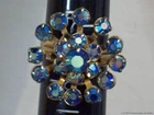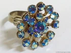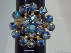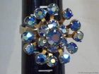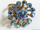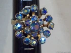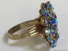 Aurora Borealis Rhinestones Ring Blue Stones Vintage Star Snowflake Flower Retro Please check the pictures to examine the detail, checking the pictures and item description for condition. If you like pins, jewelry, postcards, matches, matchbook covers, patches please check my other listings. See my other listings for more great items! The listing is for Vintage AB Glass Blue Rhinestones Ring Adjustable Retro Cluster Flower Snowflake Aurora Borealis Size 7 1/2 collectible jewelry item pictured only . This adjustable gold tone ring features prong set colorful faceted round iridescent blue Aurora Borealis glass rhinestones . The design suggests a flower or snowflake. This ring is not signed, it does not have a metal fineness or designation mark. The ring on my ring stick is approximately a size 7 1/2 with care it could be adjusted a little. CONDITION & TERMS By bidding / purchasing buyers understand & accept that: items are represented to the best of my ability, are used or aged, and may contain unseen faults the buyer will take full responsibility for. This item is preowned, not new, used and contains imperfections. Due to variations between computers, color may vary. Please note the size listed in the description since prospective may be difficult to judge. All items are as found. Due to age, history, use there is light surface wear. The ring has a light patina from oxidation with spots. Please contact me prior to bidding to clarify any questions or concerns. SHIPPING Shipments start at USPS Ground Advantage. This rate is higher but it allows me to use extra packing material and safely ship your item quickly. Items that are 250.00 or more will require signature confirmation. Free shipping when you choose USPS Ground Advantage when shipped within the USA. Delivery time is a estimate that does not consider weather delays, holidays, or unexpected events. Note to Florida Residents State Sales Tax will be added to purchases, for other states eBay collects the sales tax and remits it. International purchasers it is your responsibility to be aware of any import or customs fees your country may apply to your incoming packages. I will not falsify information on the customs forms. International purchasers will make payment by Paypal only. The International Shipping I offer is First Class Package International or Priority Mail International. Please click on to the shipping and payment tab to use the international postage calculator. I AM HAPPY TO COMBINE LISTINGS! USA SHIPMENTS ARE POSTED WITH A TRACKING NUMBER! COMMUNICATION If you have any questions, please contact me via eBay messaging system early before the listing nears its end. Thank you for Looking! inkfrog terapeak