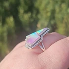 Beautiful genuine aurora opal gemstone Solid 925 Sterling Silver NWOT Please see all photos to make an informed purchase tags: gifts for her jewelry rings southwest southwestern cowgirl unique beauty artisan unisex gift natural stone stones fire opal purple pink đź’ś