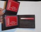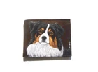 Australian Shepherd Dog Wallet for Men Hand Painted Black Leather Bifold This product is a black genuine leather bifold wallet for men that has been hand painted with an Australian Shepherd dog design. The wallet is made of leather and was manufactured in India. It is a modified item, with the modification being the hand painted design. The wallet is a collectible item and is perfect for Australian Shepherd dog lovers. Dimensions are standard bifold size. It has pockets for credit cards, billfolds and ID window.