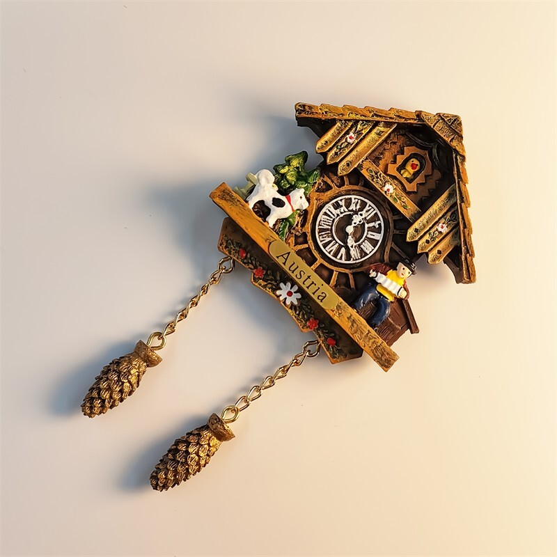 Austrian Wooden House Cuckoo Clock Tourist Souvenir 3D Resin Fridge Magnet Craft