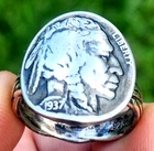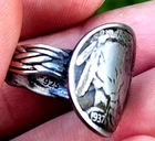 Thank you for interesting Circulated vintage Buffalo Indian nickel coin solid .925 sterling silver 6 mm wide ring band. Men signet ring for 11 US size. It is Indian showing side. I can make it with Buffalo showing side if you let me know when you place an order. Comes with in nice gift box. Please check my other items I make necklaces, cuff links, and bracelets with authentic coins and customize to wrist size bracelets with genuine Buffalo Bison leather and Alligator leathers.