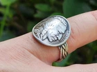 Thank you for interesting Circulated vintage Buffalo Indian nickel coin solid .925 sterling silver 6 mm wide ring band. Signet ring for 11 US size. It is Indian showing side. I can make it with Buffalo showing side if you let me know when you place an order. Comes with in nice gift box. Please check my other items I make necklaces, cuff links, and bracelets with authentic coins and customize to wrist size bracelets with genuine Buffalo Bison leather and Alligator leathers.