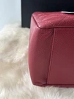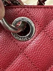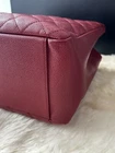 Authentic CHANEL Caviar GST Tote with Silver Hardware in Dark Red is a pre-owned bag that exudes elegance and sophistication. The large size of the tote with a width of 13 inches, height of 9 inches, and depth of 5 inches, makes it a perfect companion for everyday use, while still being able to hold all your essentials. Crafted from high-quality caviar leather, the exterior of the bag is durable and scratch-resistant, while the silver hardware adds a touch of luxury. The tote features a fabric lining in gray and has a spacious interior with multiple pockets to keep your belongings organized. The leather handles are comfortable to hold and make the bag easy to carry. This Chanel GST Tote is a timeless piece that will never go out of style.