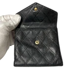 Chanel Caviar Skin Matelasse Wallet Black Gold Compact Used