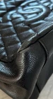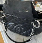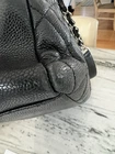 This is an authentic Chanel matrasse with a silver chain strap. The matrasse is made of high-quality materials and features a black leather and metal handle/strap. The interior is lined with black fabric and has inner pockets for storage. The matrasse is medium-sized and has a black exterior color with silver hardware. There is a little wear on the edges and top. Small makeup stain in the inside zipper part. Please see the photographs. Bag is not returnable, I am happy to answer any questions. Please reach out. I feel it’s nothing to be concerned, the bag is beautiful. It is part of the Chanel Caviar product line and is perfect for women who want a stylish and functional accessory.