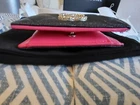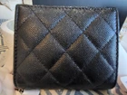 Authentic Chanel small black caviar wallet with pink leather interior from 23P. Gold hardware. Wallet is in excellent condition and was only lightly used. Comes with a full setting addition to the felt protectors and card slot inserts--box, camellia/ribbon, care booklet, dust bag, retail tag, and original receipt with private information deleted. Wallet measures 4"x4"x1". Snap closure and inside snap coin pouch. 3 card slots, billfold, and 2 other concealed compartments under the coin pouch and card slots. Wallet will be processed through eBay's Authenticity Guarantee program.