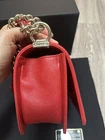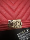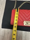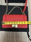 UP FOR SALE IS 100% AUTHENTIC ABSOLUTELY BEAUTIFUL CHANEL MEDIUM CHEVRON BOY BAG GORGEOUS RED CAVIAR QUILTED L EATHER SHINNY GOLD CC CLOSURE AND HARDWARE LENGHT: 9.75 INCHES HEIGHT: 5.75 INCHES WIDTH: 2.75 INCHES COMES WITH BOX, DUST BAG AND AUTHENTIC CARD CC CLOSURE MIGHT HAVE SOME SCRATCHES FROM OUTSIDE BUT NOTHING MAJOR INSIDE PLASTIC WRAP IS STILL ATTACHED SIDE CHANEL LOGOS HAS PLASTIC WRAPS AS WELL CORNERS ARE PERFECT HAS SOME WRINKLED SIDES BUT NOTHING MAJOR, ITS FROM STORAGE INTERIOR SUPER CLEAN, NO STAINS, MARKS, PERFECT PLEASE DO NOT HESITATE TO AKS ME ANY QUESTIONS I WILL RESPOND RIGHT AWAY. I SHIP NEXT DAY OR EVEN SAME DAY AFTER THE PAYMENT. I DO SHIP INTERNATIONAL USING EBAY GLOBAL SHIPPING PROGRAM SMOKE AND PET FREE HOME. PLEASE CHECK MY OTHER ITEMS THANKS FOR LOOKING AND HAPPY SHOPPING