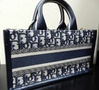 East-West Dior Book Tote without Strap Blue Dior Oblique embroidery and calfskin (10.5x5.5x4 inches) Top Handle Length : 10 inches Top Handle drop length : 3 inches Can be carried by hand, worn over the shoulder or crossbody Christian Dior Paris signature on the front Two interior slip pockets Made in Italy Dust bag, original box, tags, care card and all other items that came with it (as seen in the picture) are included. I bought this bag at Dior website and copy of the receipt will be included with blocked personal info.