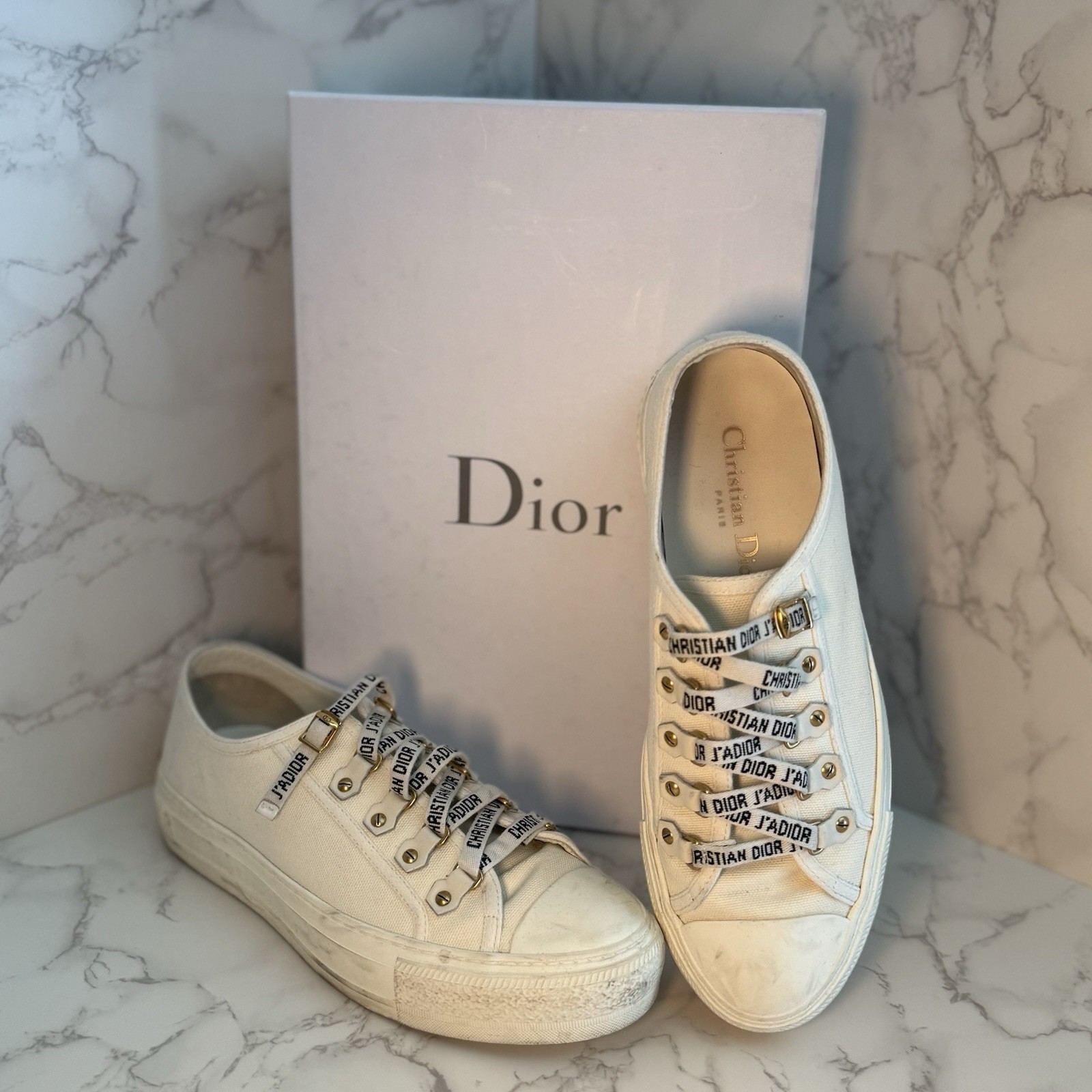 Authentic Christian Dior WALK’N’DIOR Low-Top Sneaker in White Canvas - Comes with original box - Size 38 (EU) / 8 (US) - Retail Price: $885