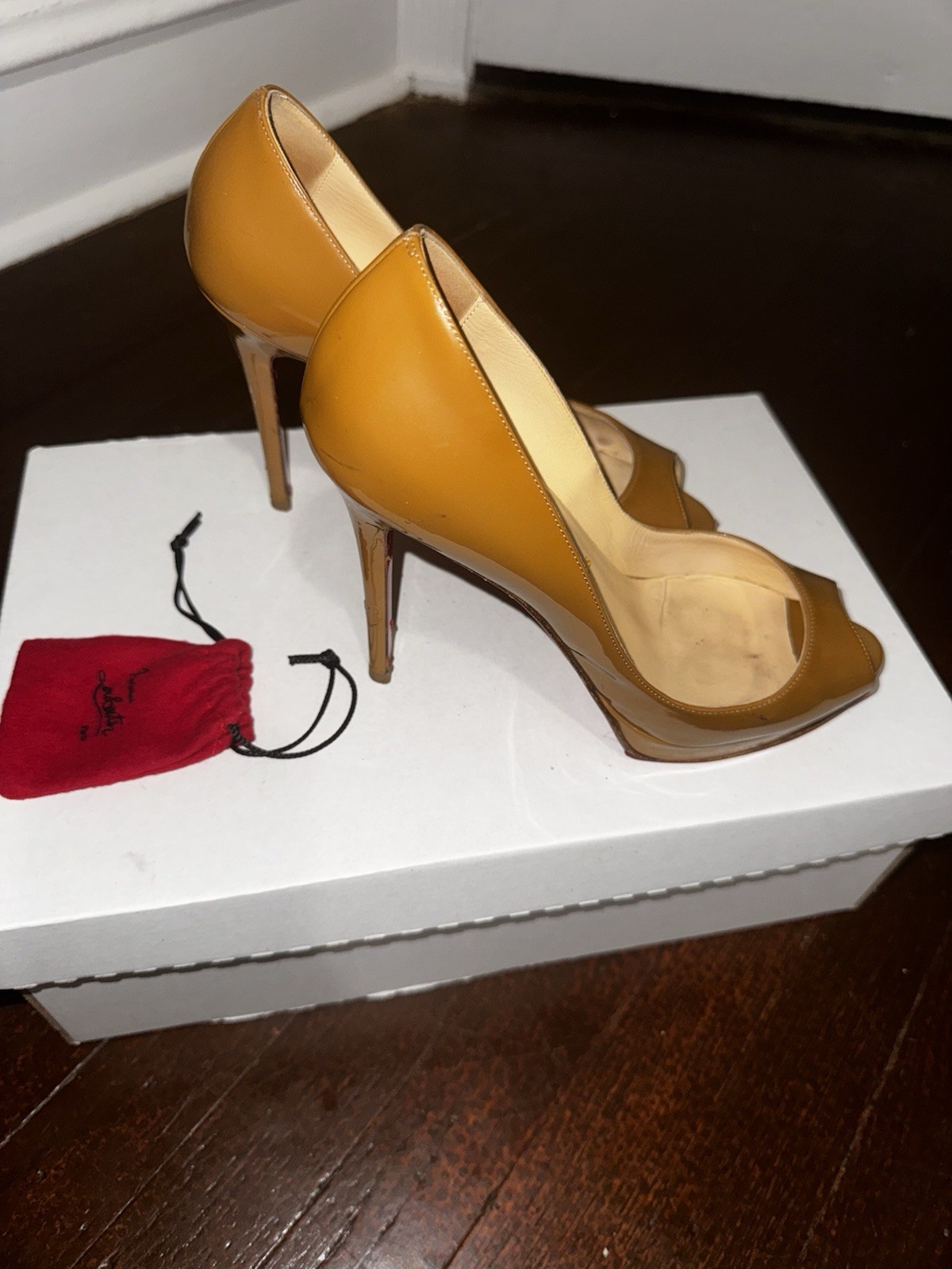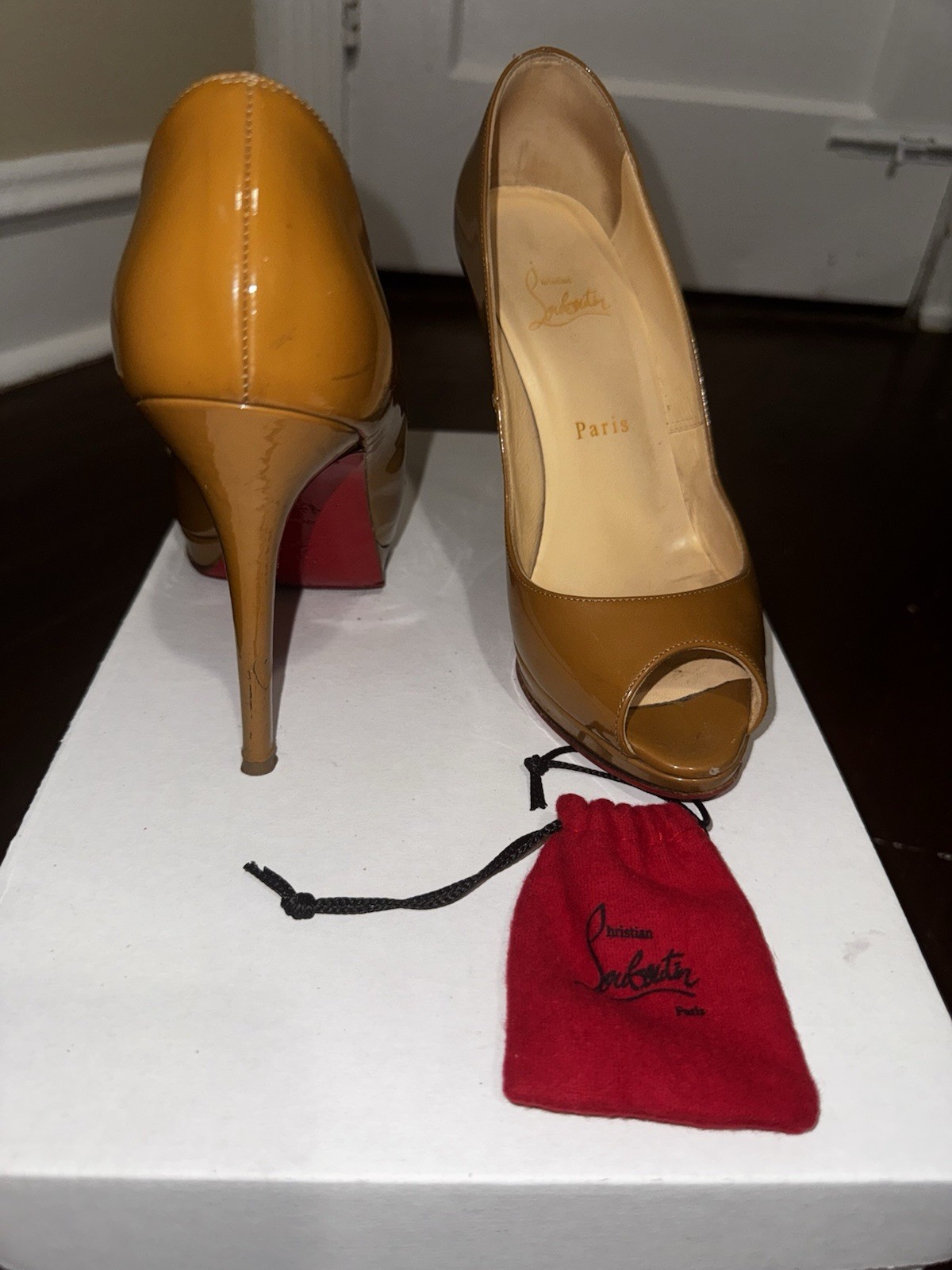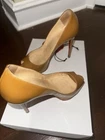 Authentic pre-owned Christian Louboutin patent leather red bottom heels come with COA, extra heel caps, and generic box.