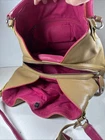 B. Makowsky Tote Taupe Leather Handbag Purse Shoulder Bag Hobo Gold Accents GUC