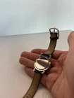 This Coach women's wristwatch features a sleek silver-tone case with a clean white dial and bold Arabic numerals. Paired with a classic black leather strap. Shows minor signs of wear. Untested watch – may require a battery replacement or repair. Sold as-is for parts or restoration, with no guarantees. Due to the nature of this listing, returns will not be accepted. Images are accurate representation of condition, please examine carefully before purchase.