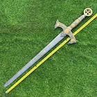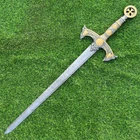 EXCLUSIVE HANDCRAFTED Damascus Steel Blade: A Legendary Sword for the Modern Warrior, Medieval Sword Swords Battle Ready, Hand Forged Sword, Damascus Sword, Long Sword, Viking Sword, Sword, Wedding Gift, With sheath Product Details: Overall Length: Approximately 35.0"inches (Approx.) Blade Material: Genuine Damascus Steel Blade Hardness: 54-58 HRC Handle Material: Pewter Handle Size Verification: To help you easily determine the size, we've included images with a scale for precise dimension reference. Thank you for your understanding. We appreciate your consideration. Included Accessories: Sheath -excellent husband wife gift -Wedding gift -Father's Day gift -Mother's Day gift -Birthday Gift -Groomsmen gift -Christmas gift -Luxury Gifts For Men -Anniversary gift for husband -Thanksgiving Gift For International Customers: We kindly advise our international customers to familiarize themselves with their country's regulations prior to making a purchase. If customs in your region request customs duties, please be prepared to cover these costs. Regrettably, we cannot assume responsibility, nor issue refunds in such cases. Our Damascus Steel Creation Process: At our workshop, we take immense pride in crafting authentic Damascus steel knives that surpass mere acid etching. Here's an overview of our Damascus steel-making process: 1. Material Selection: We meticulously combine 1095HC and 15N20 nickel carbon steel for our blades. 2. Layering: The chosen steels undergo repeated heating and folding to achieve a remarkable 384 layers. 3. Acid Burn: Following the layering process, the blade is treated with acid, revealing the brilliant nickel shine and a dark gray hue in the high carbon steel, thereby showcasing the stunning Damascus patterns. 4. Blade Finishing: Concurrently, we expertly sharpen the blade's edge, transforming the acid-treated edge into a striking satin finish. Our unwavering commitment to preserving the authenticity and craftsmanship of Damascus steel ensures that each knife in our collection showcases intricate layers and delivers exceptional performance. AGE LIMITATION: Please note that we exclusively sell knives to individuals who are 18 years of age or older. Additional Details: Leather Sheath (if pictured): Rest assured, this item comes with a superior-quality, sheath. Crafted with meticulous hand-tooling and stitching, it exemplifies fine craftsmanship and is designed for exceptional durability. The added stitching ensures it withstands years of demanding use, providing reliable protection for your knife throughout its lifetime. Care and Maintenance: When necessary, use a Diamond Wet Stone or a superior sharpening tool to maintain a 20-degree blade edge. After use, clean the item with soap and water, ensure thorough drying, coat it with gun oil, and store it separately from the sheath. Leather absorbs moisture from the air and can lead to blade rust if stored improperly. Customer Feedback: Your satisfaction and feedback are of utmost importance to us. We genuinely appreciate your positive reviews! When assessing shipping time, please consider international transit. Your recognition bolsters our confidence to enhance our services. If you encounter any issues with your order or product dissatisfaction, please reach out to us first. We are committed to resolving any concerns to your satisfaction and kindly request you not to leave neutral or negative feedback. Payments & Returns: All accepted eBay payment methods are available for this purchase. Our return policy typically extends to 14 days. Shipping and Handling: We offer free shipping on all our products (In the USA) Tracking Info: The buyer will receive the tracking number via email (if available). You can also track the shipment in the "Order Details" section on eBay. USPS UPS DHL updates tracking information nightly (if available). Contact: Feel free to contact us anytime via eBay messages. We are dedicated to responding to your inquiries within 24 hours and providing the best possible assistance.