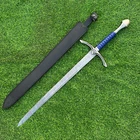 EXCLUSIVE HANDCRAFTED Damascus Steel Blade: A Legendary Sword for the Modern Warrior, Medieval Sword Swords Battle Ready, Hand Forged Sword, Damascus Sword, Long Sword, Viking Sword, Sword, Wedding Gift, With sheath Product Details: Overall Length: Approximately 35.0"inches (Approx.) Blade Material: Genuine Damascus Steel Blade Hardness: 54-58 HRC Handle Material: Leather Wrapped with handmade steel guard and but cap. Size Verification: To help you easily determine the size, we've included images with a scale for precise dimension reference. Thank you for your understanding. We appreciate your consideration. Included Accessories: Sheath -excellent husband wife gift -Wedding gift -Father's Day gift -Mother's Day gift -Birthday Gift -Groomsmen gift -Christmas gift -Luxury Gifts For Men -Anniversary gift for husband -Thanksgiving Gift For International Customers: We kindly advise our international customers to familiarize themselves with their country's regulations prior to making a purchase. If customs in your region request customs duties, please be prepared to cover these costs. Regrettably, we cannot assume responsibility, nor issue refunds in such cases. Our Damascus Steel Creation Process: At our workshop, we take immense pride in crafting authentic Damascus steel knives that surpass mere acid etching. Here's an overview of our Damascus steel-making process: 1. Material Selection: We meticulously combine 1095HC and 15N20 nickel carbon steel for our blades. 2. Layering: The chosen steels undergo repeated heating and folding to achieve a remarkable 384 layers. 3. Acid Burn: Following the layering process, the blade is treated with acid, revealing the brilliant nickel shine and a dark gray hue in the high carbon steel, thereby showcasing the stunning Damascus patterns. 4. Blade Finishing: Concurrently, we expertly sharpen the blade's edge, transforming the acid-treated edge into a striking satin finish. Our unwavering commitment to preserving the authenticity and craftsmanship of Damascus steel ensures that each knife in our collection showcases intricate layers and delivers exceptional performance. AGE LIMITATION: Please note that we exclusively sell knives to individuals who are 18 years of age or older. Additional Details: Leather Sheath (if pictured): Rest assured, this item comes with a superior-quality, sheath. Crafted with meticulous hand-tooling and stitching, it exemplifies fine craftsmanship and is designed for exceptional durability. The added stitching ensures it withstands years of demanding use, providing reliable protection for your knife throughout its lifetime. Care and Maintenance: When necessary, use a Diamond Wet Stone or a superior sharpening tool to maintain a 20-degree blade edge. After use, clean the item with soap and water, ensure thorough drying, coat it with gun oil, and store it separately from the sheath. Leather absorbs moisture from the air and can lead to blade rust if stored improperly. Customer Feedback: Your satisfaction and feedback are of utmost importance to us. We genuinely appreciate your positive reviews! When assessing shipping time, please consider international transit. Your recognition bolsters our confidence to enhance our services. If you encounter any issues with your order or product dissatisfaction, please reach out to us first. We are committed to resolving any concerns to your satisfaction and kindly request you not to leave neutral or negative feedback. Payments & Returns: All accepted eBay payment methods are available for this purchase. Our return policy typically extends to 14 days. Shipping and Handling: We offer free shipping on all our products (In the USA) Tracking Info: The buyer will receive the tracking number via email (if available). You can also track the shipment in the "Order Details" section on eBay. USPS UPS DHL updates tracking information nightly (if available). Contact: Feel free to contact us anytime via eBay messages. We are dedicated to responding to your inquiries within 24 hours and providing the best possible assistance.
