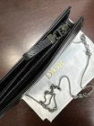 100% AUTHENTIC CHRISTIAN DIOR NEW WITH TAG BRAND new!! Color: BLACK COMES WITH TAG & DIOR dust bag Estimated Retail Price: $2,250 Christian Dior Caro Zipped Pouch With Chain Diamond Motif Cannage Calfskin Black Total 3 compartment 1 zipped compartment in the middle with 6 credit card slots Calfskin Exterior Material: Leather Exterior Interior Material: Leather Hardware Color: Aged Silver Measurements: Height 5.5", Width 8", Depth 1.5”