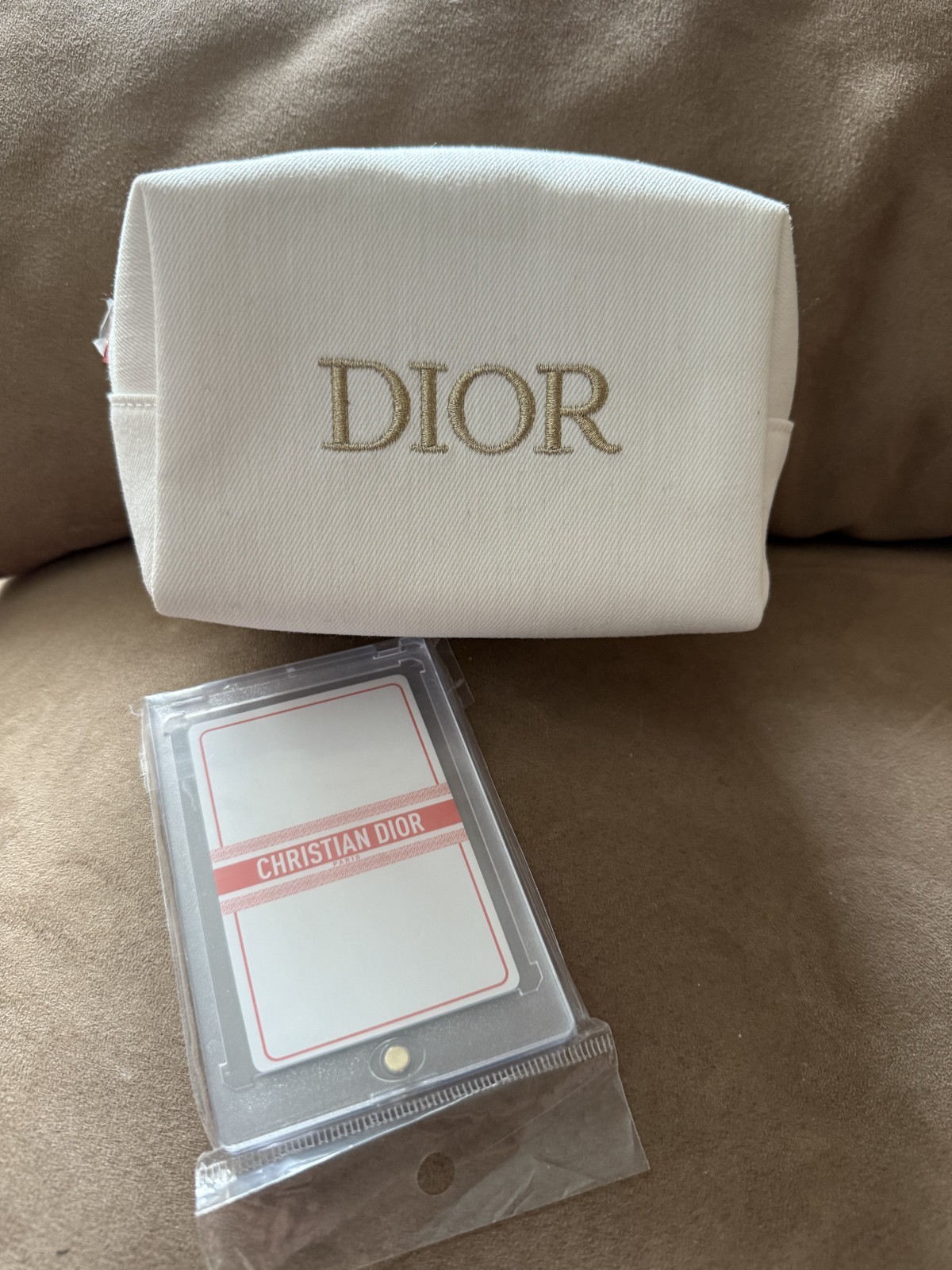 This is a Dior bundle, can be sold separtely upon request. New Dior GWP beauty bag with gold hardware details. Authentic Christian Dior 4 of Diamonds coral color in protective case.