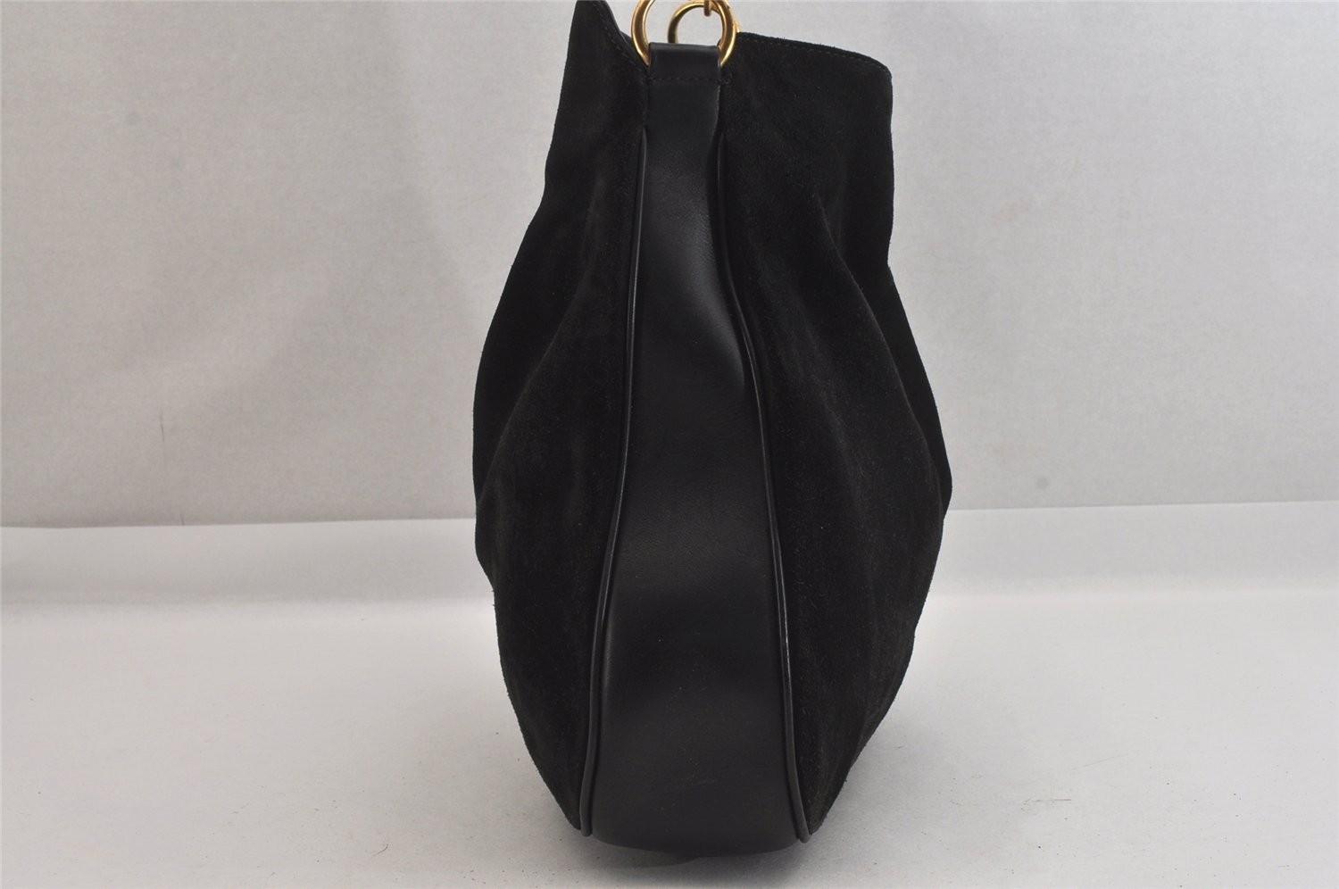 Authentic GUCCI Bamboo 2Way Shoulder Hand Bag Suede Leather Black Junk 0353N