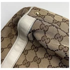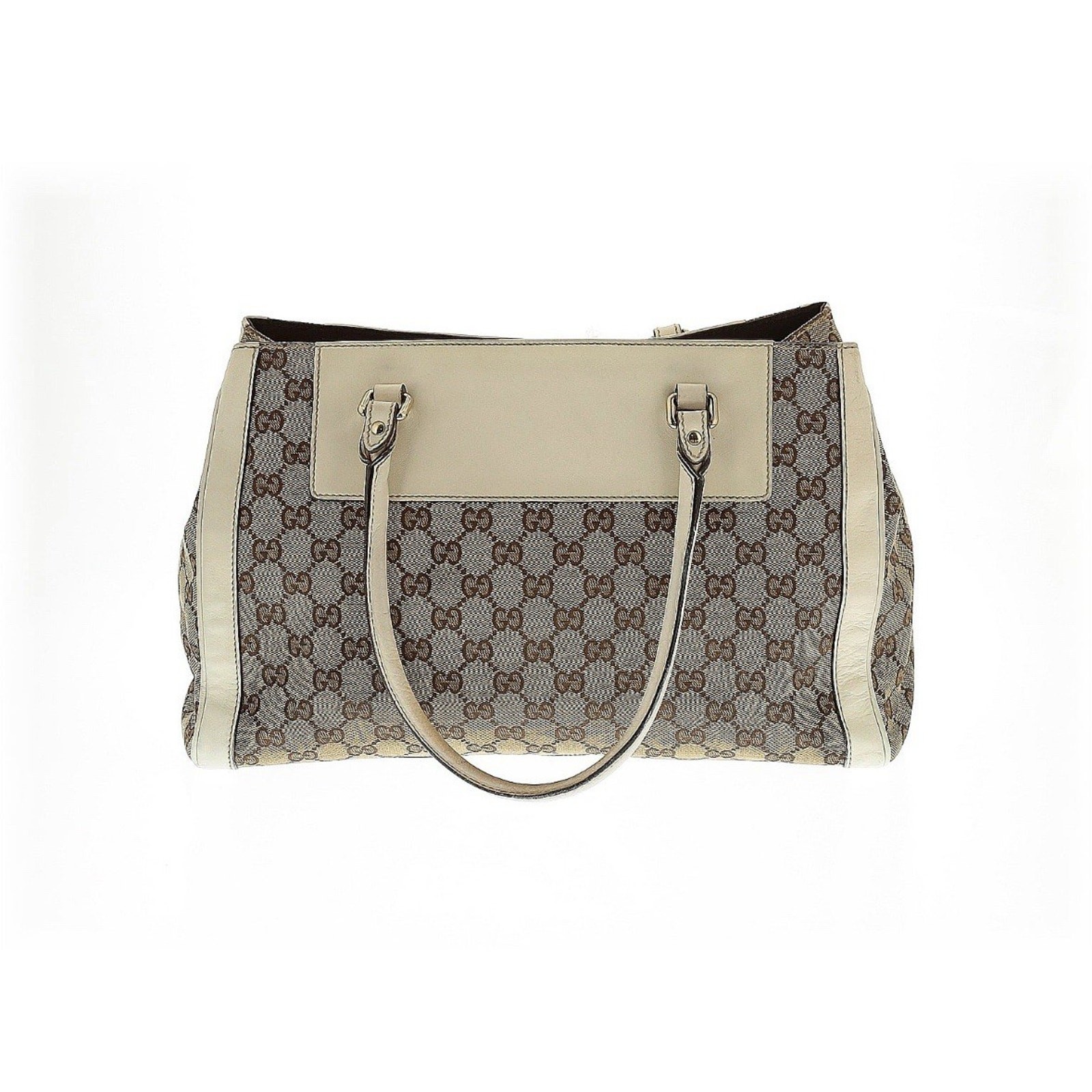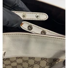 Elevate your style with this authentic Gucci Logo GG Pattern Trophy Tote Bag. Crafted from canvas and leather, this medium-sized tote features a white exterior with a brown leather lining. The bag is adorned with the iconic GG pattern and gold-plated hardware, adding a touch of elegance to your casual outfit. This Gucci Trophy Tote Bag is a must-have for any fashion-forward woman. With double leather handles and a spacious interior, this tote is perfect for carrying your essentials. Made in Italy, this bag is a true testament to the craftsmanship and quality of Gucci.