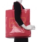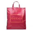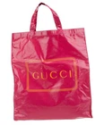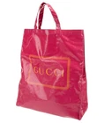The product is an authentic GUCCI Pink Coated Canvas Montecarlo Frame Logo Large Vertical Tote Bag. This stylish and trendy bag features the signature GUCCI logo pattern in pink on the coated canvas exterior. The large size and vertical design make it perfect for everyday use as a tote bag. The pink hardware and orange lining add a vibrant touch to the overall look of the bag, making it a fashionable choice for women looking for a high-quality designer accessory.