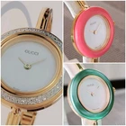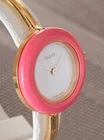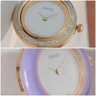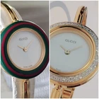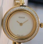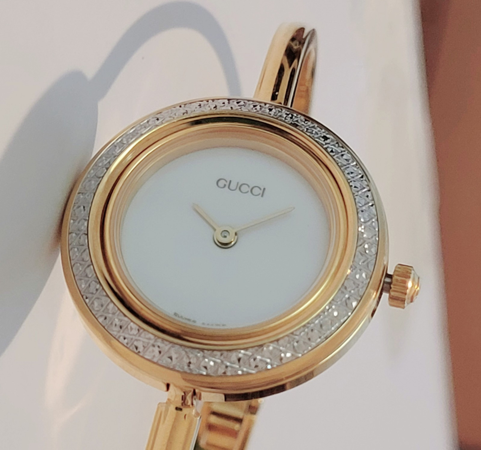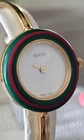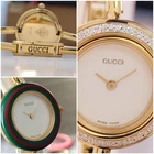 Gucci 11/12.2 Ladies Bangle 💃Watch, Authentic Swiss Made, Gorgeous Diamond Cut Bezel Pre-Owned in Excellent Condition 26 MM Case Size Excluding Crown. Shiny and Scratch Free Crystal Will fit a 6.25 Inches of wrist size or Smaller .Please make sure you have the same wrist size.No Adjustment. Five Excellent Bezels Excelente Gold Plating Watch Stand Is Not Part of The Sales. New battery has been installed and keeps perfect time. If for any reason you are not satisfied with your purchase I am offering free return and full refund. Please take a look at my feedback as a seller to have more confidence with your purchase Also,I Have Many Beautiful Guccies On My Listing To Look At. Package will be shipped with signature required. US Shipping. No Po Box.