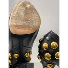 Elevate your shoe game with these stunning Gucci Babouska ankle booties. Crafted from high-quality leather, these booties feature a sleek black color with gold studded accents, perfect for adding a touch of glamour to any outfit. The Cuban heel style and ankle shaft make these booties comfortable and stylish for any occasion, whether it's a party or a casual day out. These authentic Gucci Babouska booties are a must-have for any fashion-forward woman. The leather lining and outsole ensure long-lasting comfort and durability, while the studded accents add a unique touch to the design. With a US shoe size of 9 and an EU shoe size of 39.5, these booties are the perfect addition to any shoe collection.